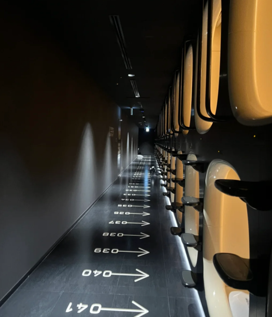 一個太空艙造型的小床,燈光柔和,安靜到只聽得到別人的呼吸聲。